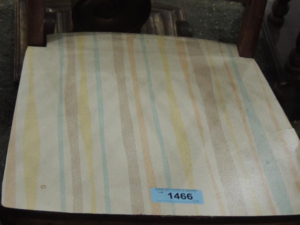 WOODEN ROCKING CHAIR WITH PAINTED STRIPE SEAT. AS SHOWN. SEE PHOTO FOR MORE DETIALS.