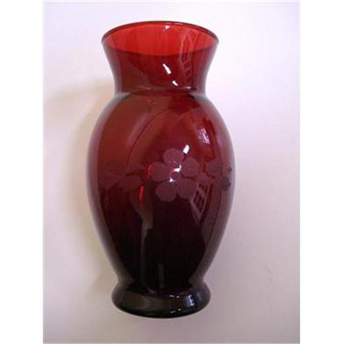 PRETTY RUBY RED VASE, DEPICTING ETCHED FLORAL DESIGN - as per images, Excellent mint condition, no chips, cracks or repairs,It stands about 6 1/2 inch tall, US Buyer please remit 8.00 for shipping plus insurance.THANKS.