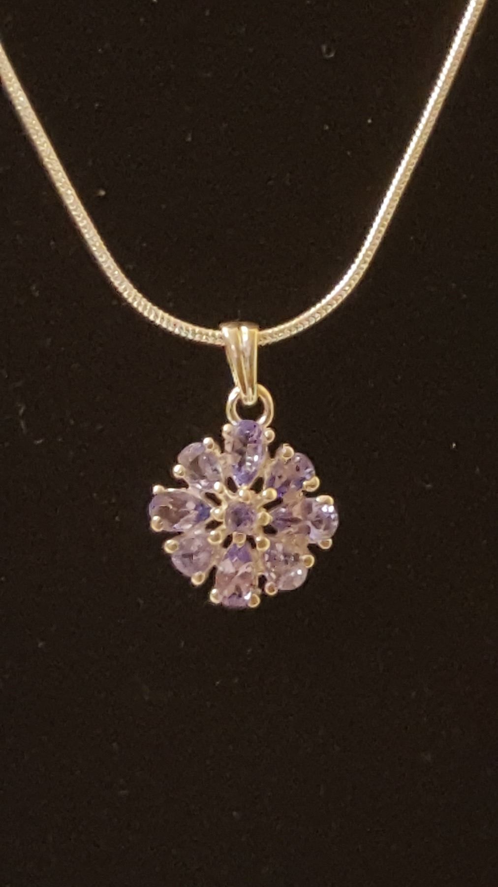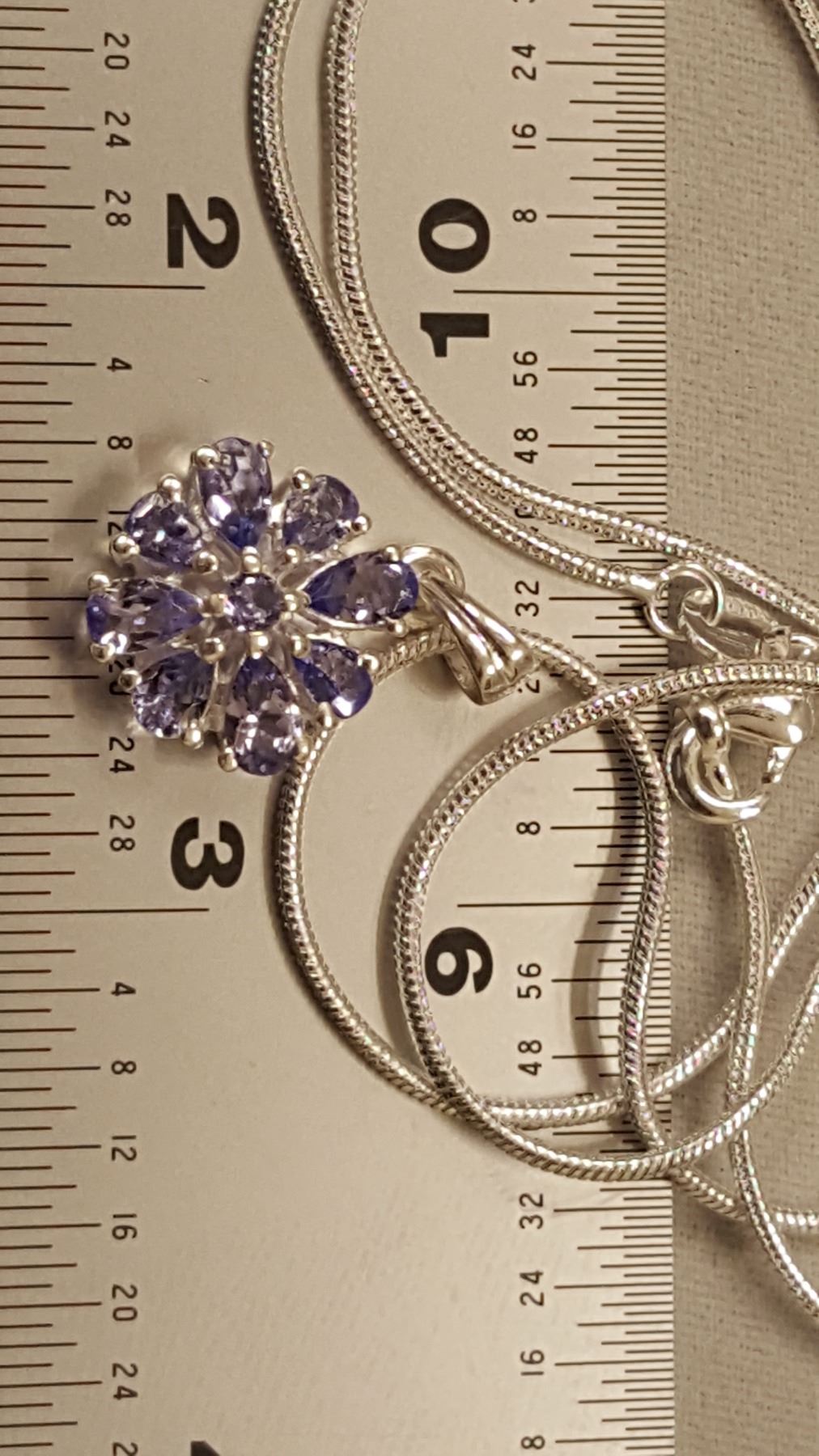 PRETTY SWEET NATURAL TANZANITE PENDANT. THESE LOVEY STONES ARE MOUNTED IN SOLID .925 STERLING SILVER. INCUDES 18" CHAIN 27 CTTW