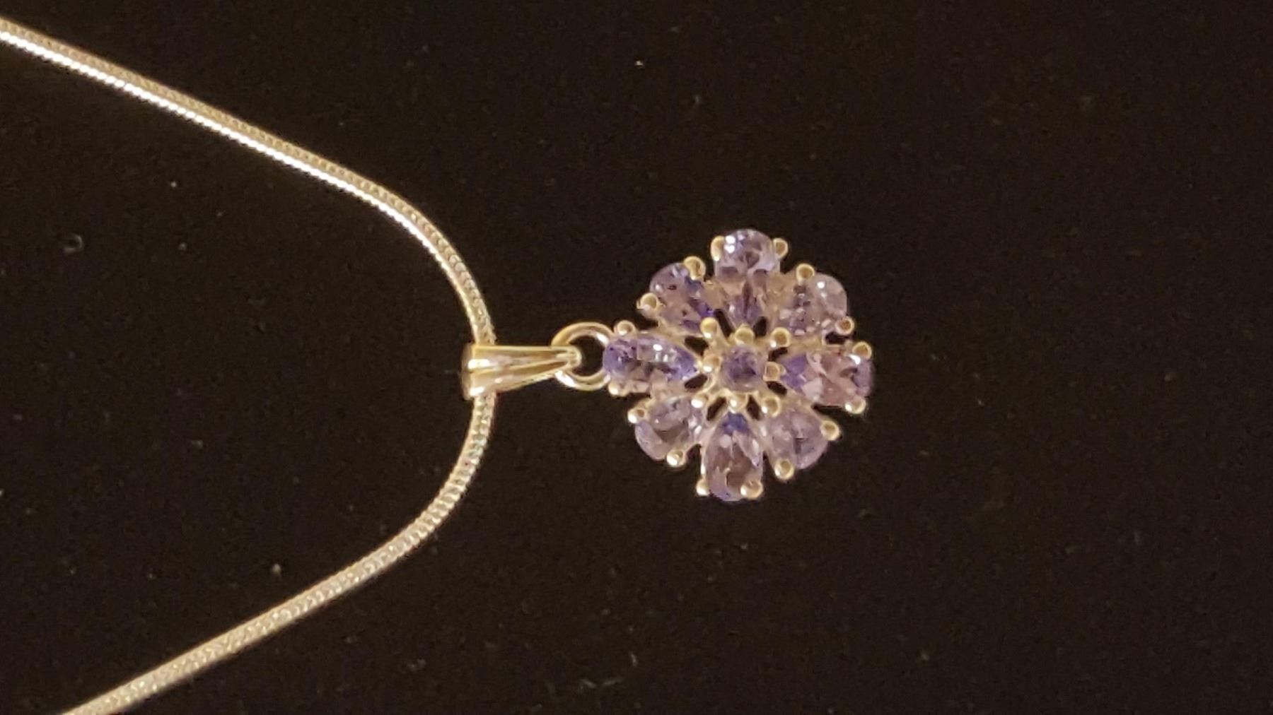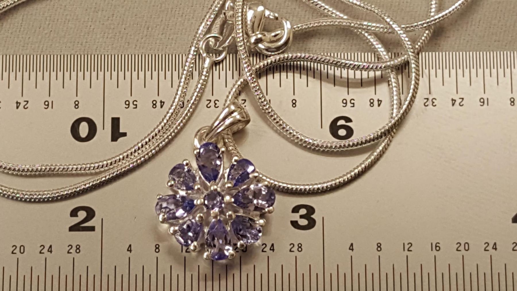 PRETTY SWEET NATURAL TANZANITE PENDANT. THESE LOVEY STONES ARE MOUNTED IN SOLID .925 STERLING SILVER. INCUDES 18" CHAIN 27 CTTW