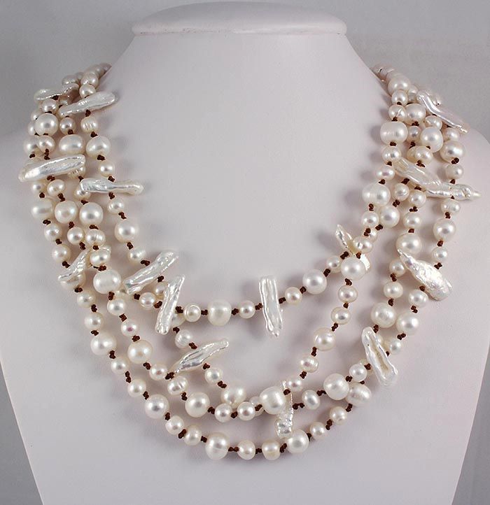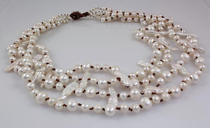PRETTY WHITE 674.00CTW FW PEARL NECKLACE W/ BOTTON LOCK **|**|** 20 INCHES LONG 4 ROWS DESIGN NECKLACE HANDMADE WITH NATURAL WHITE FRESHWATER PEARL NECKLACE ; MSRP: $300