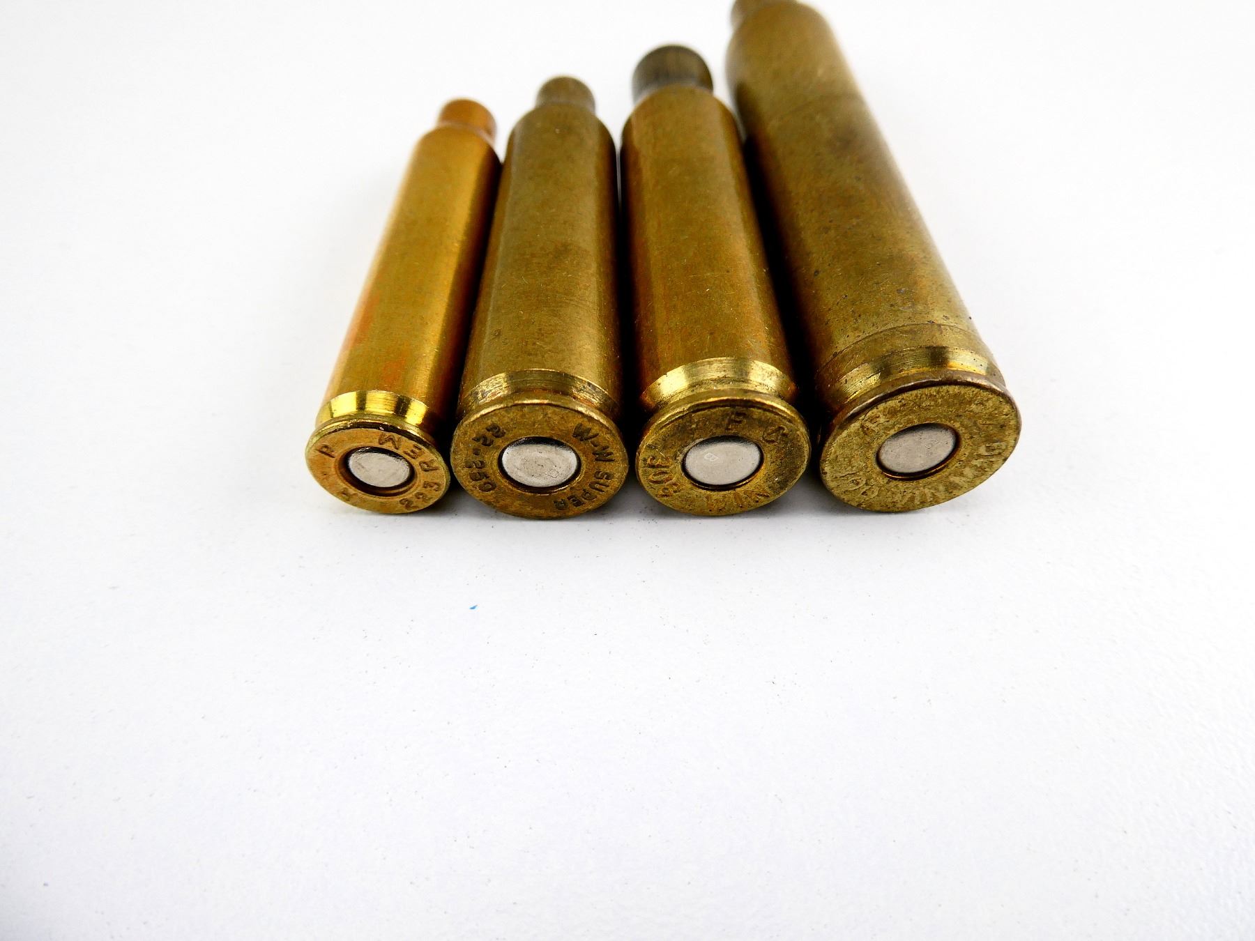 LOT INCLUDES; APPROX. (57) PRIMED BRASS CASES, VARIOUS CALIBERS INCLUDING; .223 REM, .22-250 REM, .308 WIN, .300 WIN MAG, ETC.