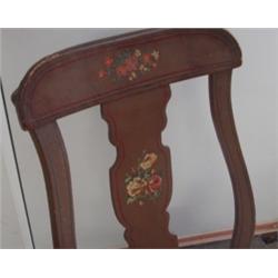 PRIMITIVE ORIGINAL PAINTED SOMERSET COUNTY, MARYLAND BALLOON BACK ROCKER. Original owner was Susan Lewis from Somerset County, Maryland. Given to Mrs. Lewis' daughter, Narcissus Lewis Simmons in 1870. Chair was then given to Peter Tilghman, Somerset Co., between 1898 and 1910. The chair has remained in the Tilghman family since. Original floral painted decoration on back splat and top crest. Shows wear to paint on edge of seat and back rest. 37" H to top of back, 16" W