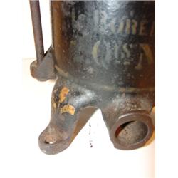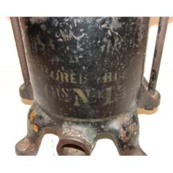 PRIMITIVE CAST IRON SAUSAGE STUFFER. Marked on top "Enterprise Mfg. Co.-Phila. U.S.A." Marked "No. 15" on body with paint. 14" H