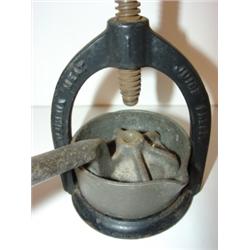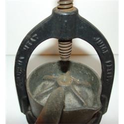 PRIMITIVE COLUMBIA CAST IRON MEAT/JUICE PRESS. Marked on frame "Columbia Meat Juice Press". 8.5" H