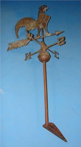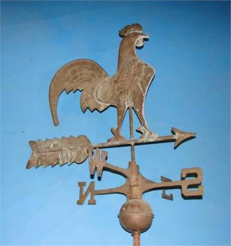 PRIMITIVE COPPER ROOSTER WEATHERVANE. 52" H