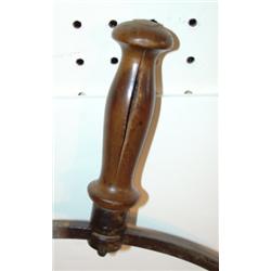 PRIMITIVE COUNTRY STORE CHEESE CUTTER. Early 20th century. Wooden handle is split. 22.5" H, 18.25" W