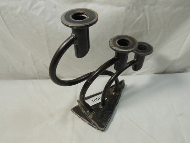 NICE HEAVY 3 SLOT CANDLE HOLDER, OR CANDELABRA, AS SHOWN. STANDS 12 TALL.