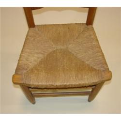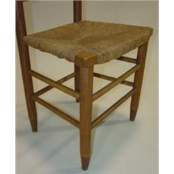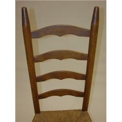 Primitive ladder back and rush bottom side chair with 4-slat back. 40" H to top of back, 18.25" W, 18" H to top of seat.