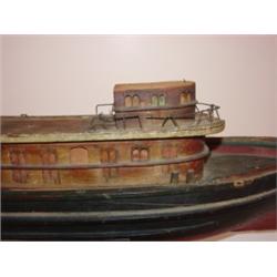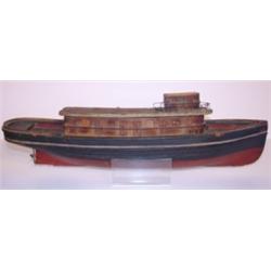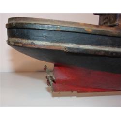 Primitive miniature red and black painted boat. Hand made and original red and black paint. 19.5" L, 5.5" H