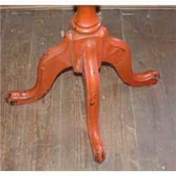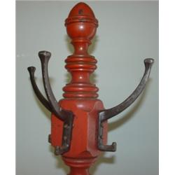 PRIMITIVE OVERPAINTED CLOTHES TREE. Has been overpainted with reddish-orange paint. 70" H