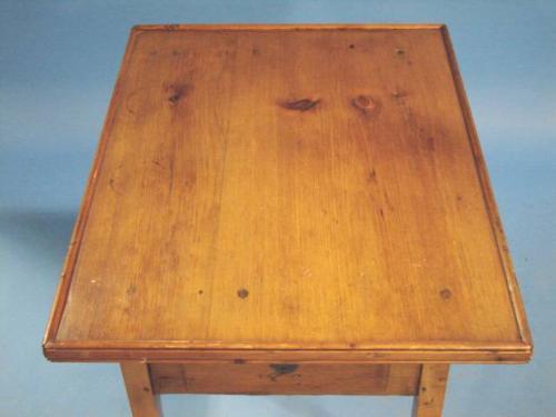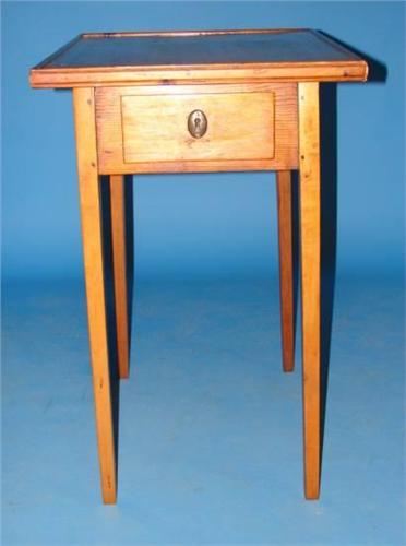 PRIMITIVE PINE SINGLE DRAWER STAND. Dish top. Tapered legs. 29" H, 18.75" W, 23.75" D