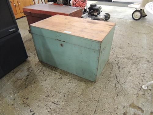 PRIMITIVE PINE WOOD FLIP LID STORAGE TRUNK. 32X19X19. AS SHOWN. VIEW PICTURE FOR DETAIL.