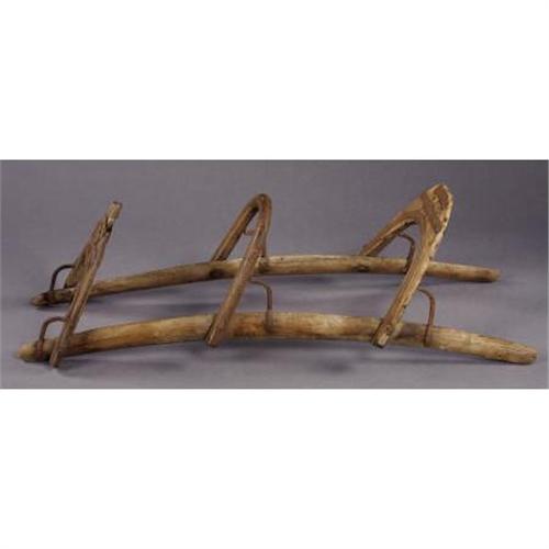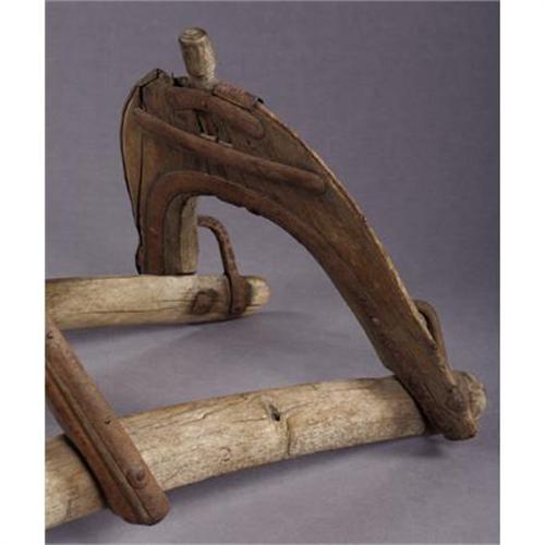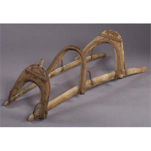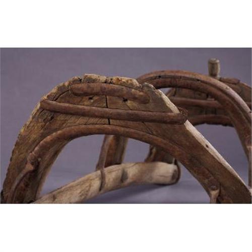 <B>CAMEL SADDLE</B></I> - When Jefferson Davis was Secretary of War, in the 1850's, he brought camels to the American West as an experiment for the U.S. cavalry to use in the desert. This camel core existed for six months and they would have used a saddle of this type. Blacksmith made frontier saddle frame of wood with metal bracing.<BR><BR><B>Condition:</B></I> Worn wood with rust on metal.<BR><BR><b>Shipping:</b> Requires 3rd Party Shipping (<a target="_blank" href="http://www.heritageauctions.com/common/shipping.php">view shipping information</a>)