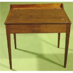 PRIMITIVE SOFTWOOD SCHOOLMASTER’S DESK. Tapered legs. Lift top. Original hinges. Dovetailed galley. 35.5” H, 36” W, 26.5” D