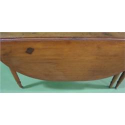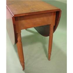 PRIMITIVE SOFTWOOD DROP-LEAF TABLE. "D" shaped leaves. Water staining and surface scratching is visible to top and one leaf. 29.5" H, 50" L, 17.5" W (closed), 53" W (open)