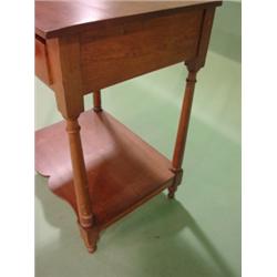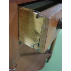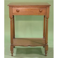 PRIMITIVE SOFTWOOD SINGLE DRAWER STAND. Stretcher base. Single dovetailed drawer. 28.75" H, 22.5" W, 17" D