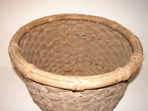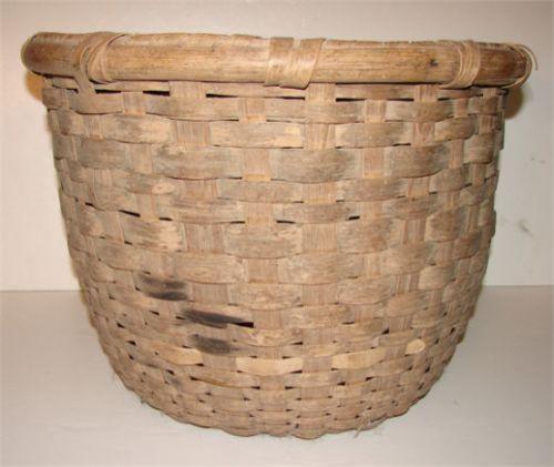 PRIMITIVE SPLINT-OAK FIELD BASKET. Shows some loss to weave at bottom of interior. 13” H, 18” Dia.