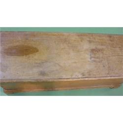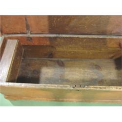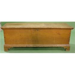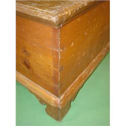 PRIMITIVE VIRGINIA SOFTWOOD BLANKET CHEST. Circa 1800-1810. Dovetailed casing. Till on inside. Doughboard lid. Original strap hinges. Bracket feet. 20" H, 55.75" L, 19.25" W