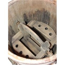 PRIMITIVE WOODEN CHURN WITH HANDLE & LID. Has all internal parts and is in working condition. 13.5" H, 12.25" Dia.