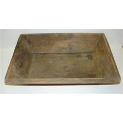 PRIMITIVE WOODENWARE TRENCHER. Square nail construction. 4.5" H, 17.5" W