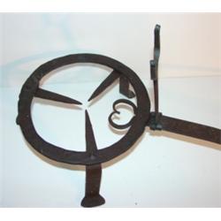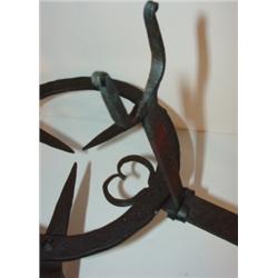 PRIMITIVE WROUGHT IRON FIREPLACE TRIVET. Heart design on base. 23" L
