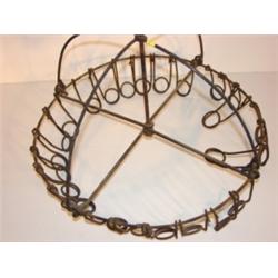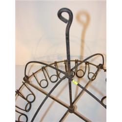 PRIMITIVE WROUGHT IRON STORE BROOM HOLDER. 17.25" H, 15" Dia.