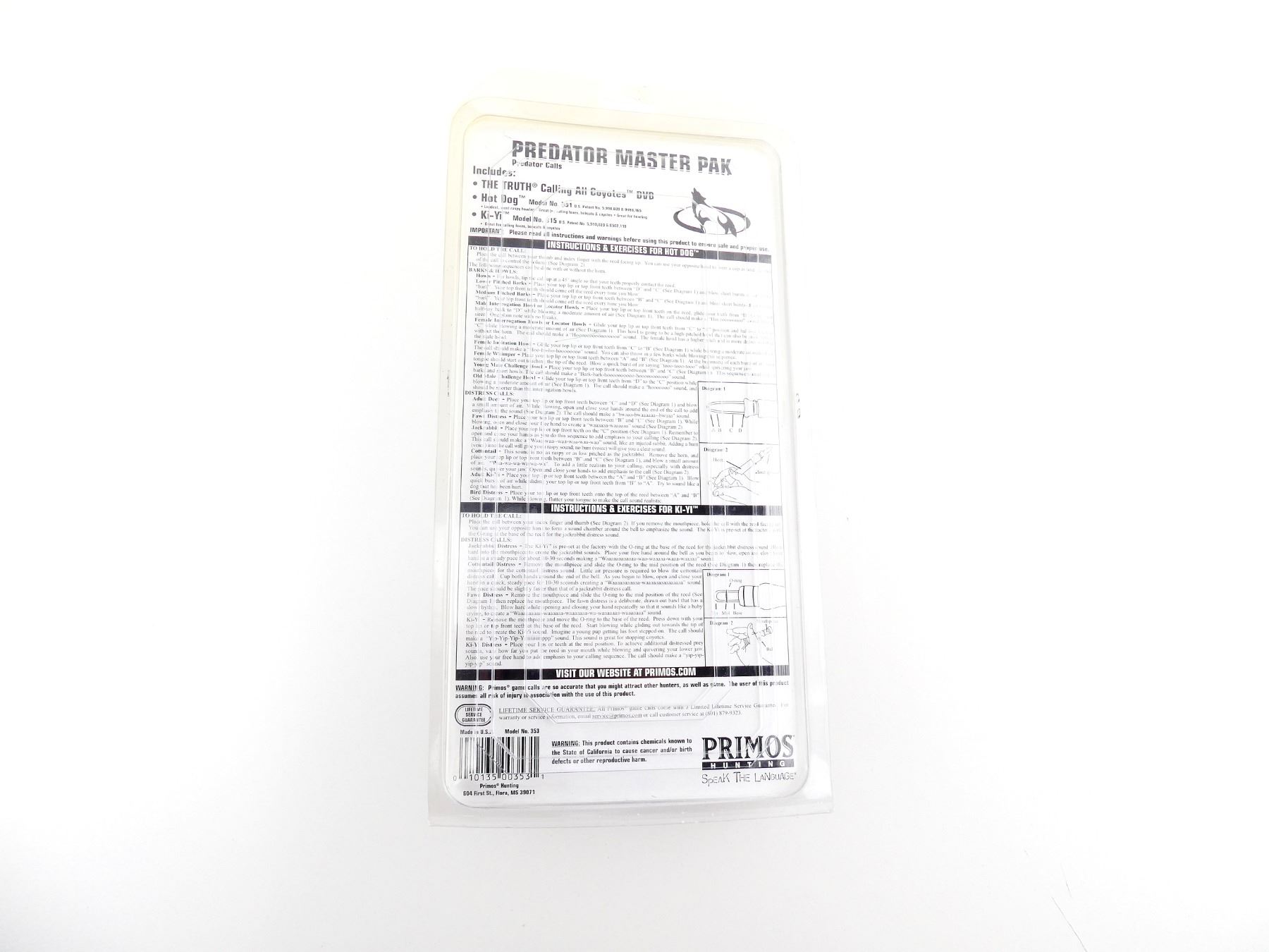 LOT INCLUDES; (1) "THE TRUTH CALLING ALL COYOTES" DVD, (1) HOT DOG, LOUDEST / MOST RASPY HOWLER, GREAT FOR CALLING FOXES, BOBCATS & COYOTES, MODEL #: 351 & (1) KI-YI, GREAT FOR CALLING FOXES, BOBCATS & COYOTES, MODEL #: 315. NEW OLD STOCK, SEALED IN ORIGINAL PACKAGING. SEE PHOTOS.