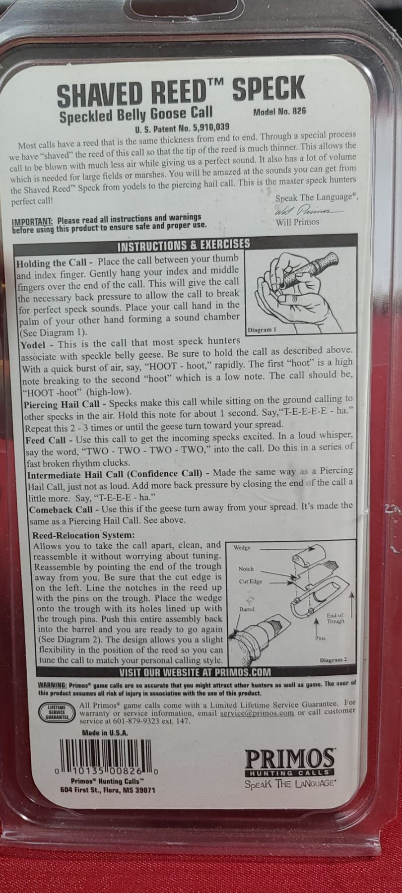 PRIMOS SHAVED REED SPECKLED BELLY GOOSE CALL - MODEL: 826