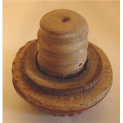 PRIMTIVE STONEWARE FOOT WARMER with removable top lid. Brown glaze. 6.75" H, 10.25" L