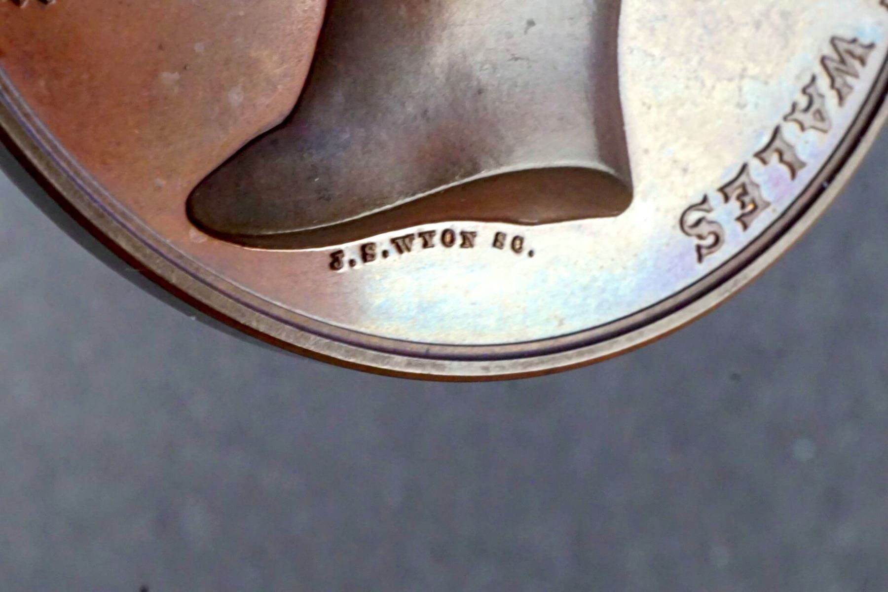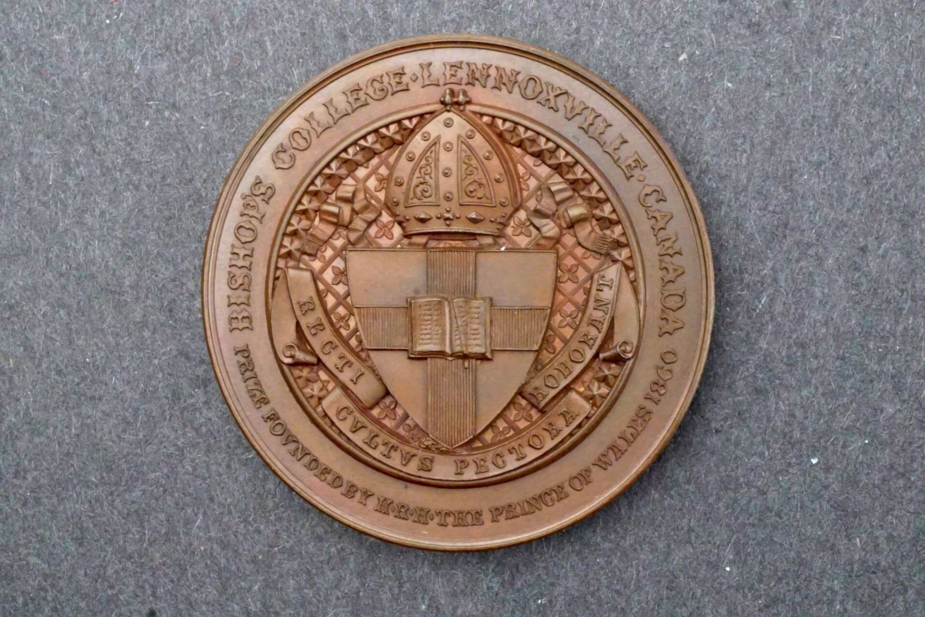 44 mm, 47.5 grams. ALBERT EDWARD PRINCE OF WALES Bust, left. Signed: J. S. WYON S. C. Reverse: Seal of the college, at center, BISHOP'S COLLEGE LENNOXVILLE Canada PRIZE PROVIDED BY H. R. H. THE PRINCE OF WALES 1860, Glossy Proof like, UNC.