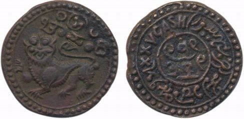 Diwan Purnaiya, Copper, 25 Cash, 11.24g, Obv: Mythical Tiger to left, Rev: Legend in Kannada, English & Roman numerals (KM# C# 187). About uncirculated, rare in this grade.