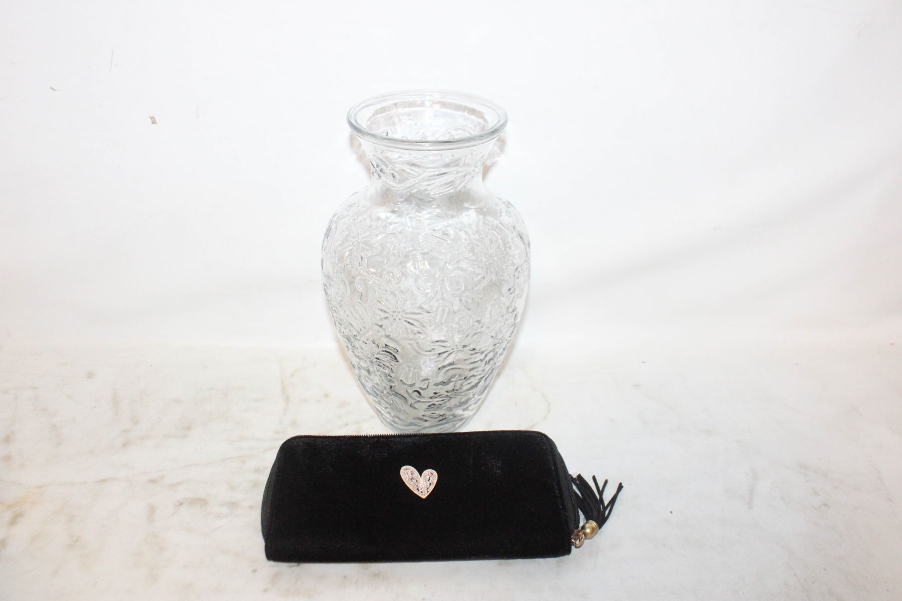 PRINCESS HOUSE 10 INCH VASE, BLACK VELVET CLUTCH