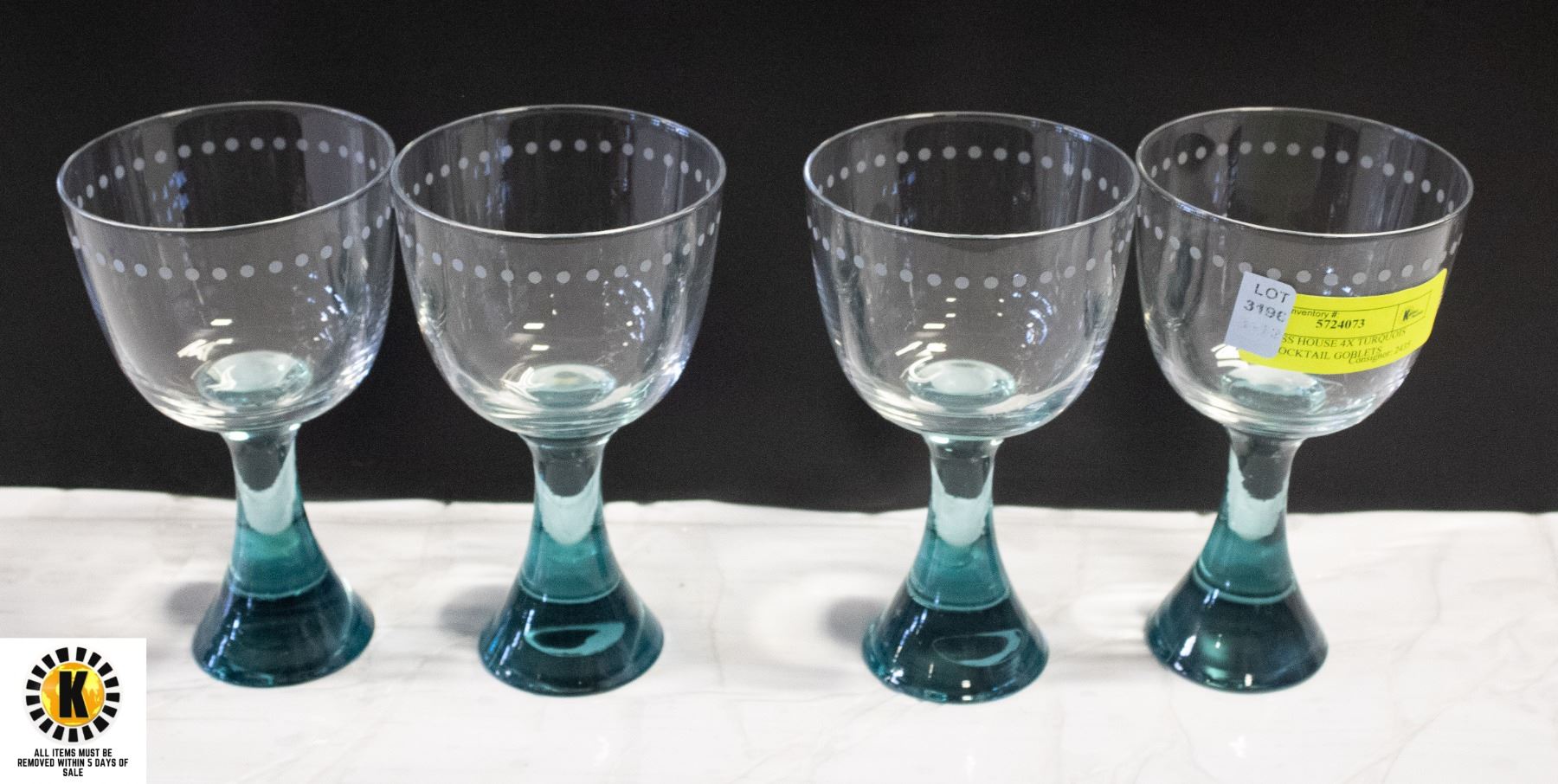 PRINCESS HOUSE 4X TURQUOIS WINE/COCKTAIL GOBLETS