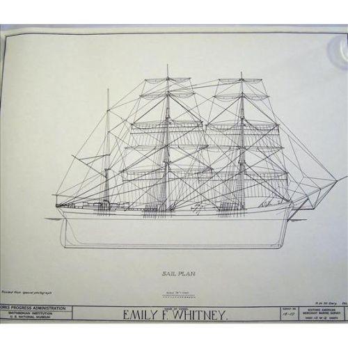PRINT - EMILY F. WHITNEY SAIL SHIP (7 PRINTS) - WORKS PROGRESS ADMINISTRATION SMITHSONIAN INSTITUTION
