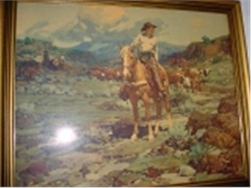 PRINT FRAMED UNDER GLASS BY ARTIST JENNEY JOHNSON. 16" X 20". 1938.