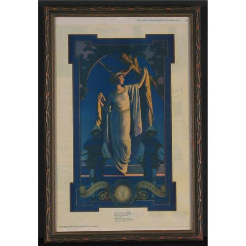 COLOR PHOTOLITHOGRAPH 15'' x 9 1/2''. Maxfield Parrish (1870-1966), NH. ''Spirit of the Night'' Ad for Edison Mazda from The Ladies' Home Journal. Placed in a vintage frame.