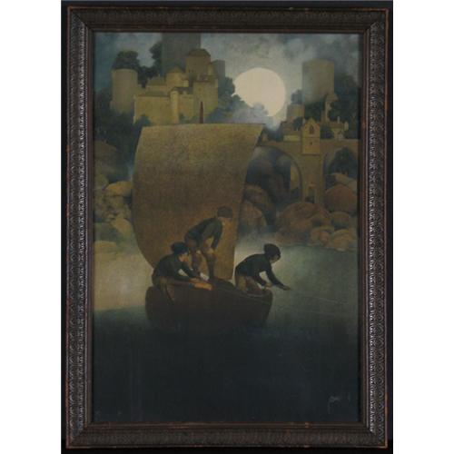 COLOR PHOTOLITHOGRAPH 14 1/2'' x 10''. Maxfield Parrish (1870-1966), NH. ''Wynken, Blynken and Nod''. Placed in a vintage frame.