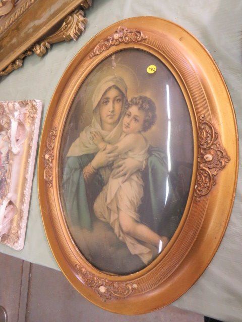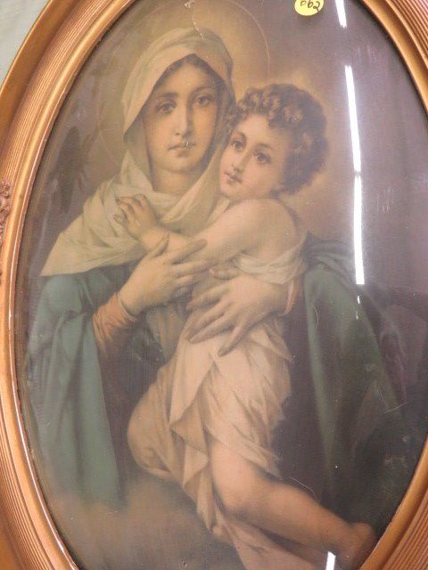 PRINT (MOTHER/CHILD) *OVAL FRAME W/DOME GLASS* (19" X 25") *PICTURE TORN*