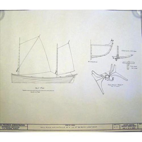 PRINT - NO-MANS LAND BOAT (2 PLANS) - WORKS PROGRESS ADMINISTRATION SMITHSONIAN INSTITUTION
