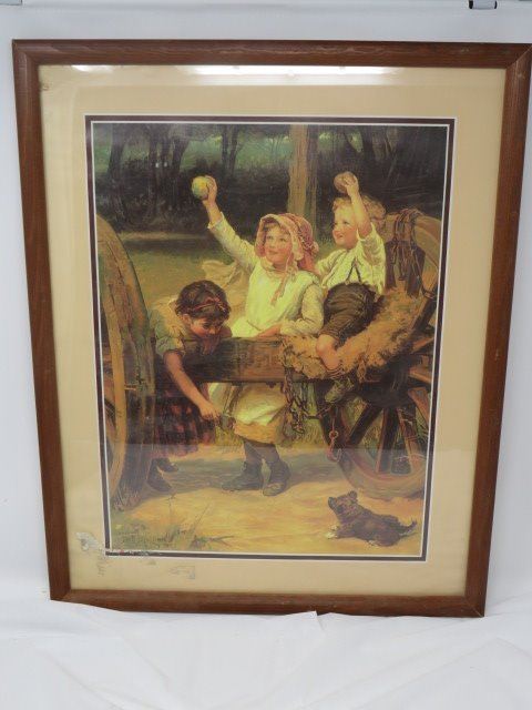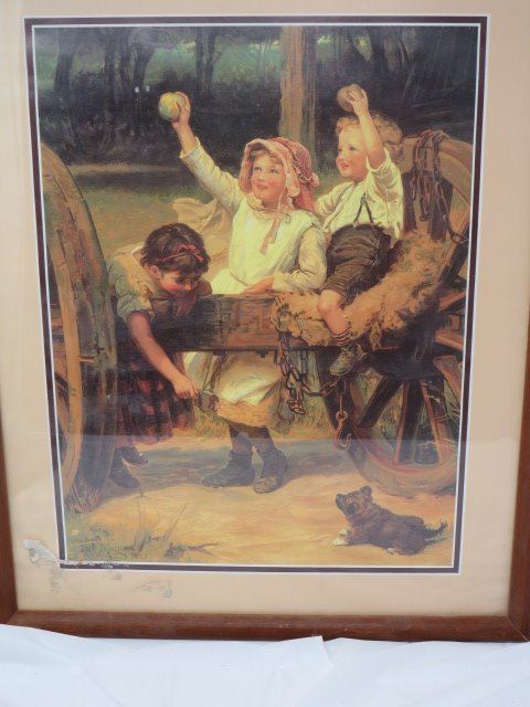 PRINT OF KIDS IN THE YARD (FRED MORGAN 1882) *FRAMED 17" X 21"*