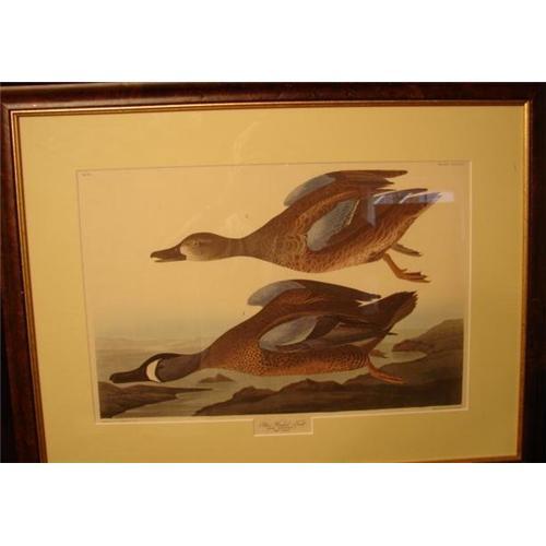 Mid-20TH Century Print of Two Birds framed and matted. Titled Blue-Winged Teal, Anas Discors.L.--Male 1-Female 2. Lower left corner inscribed Drawn from Nature by J.J. AUDUBON. F.R.S. F.L.S.