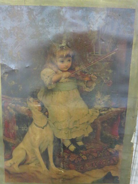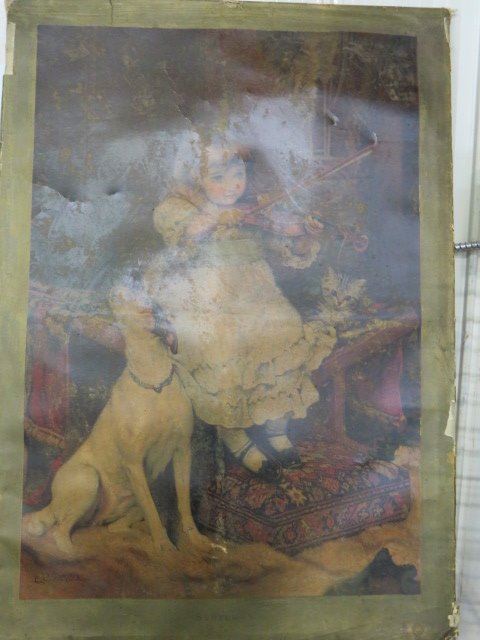 PRINT ON CANVAS (GIRL & DOG) *31" X 22"* (DAMAGED)