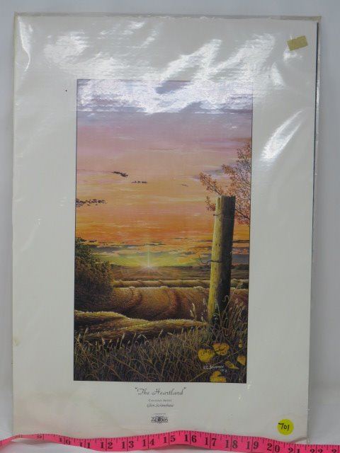PRINT 'THE HEARTLAND' (GLEN SCRIMSHAW) *MAT IS WATER STAINED* (20 X 14")