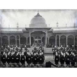 PRINTS, ENGRAVINGS, PHOTOGRAPHS - A large Bourne and Shephard photograph, Coronation durbar, Delhi, 1903, signed and inscribed Simla, 34in x 47in, contemporary mahogany frame (see illustration) Lord Curzon spent two years in planning the Coronation durbar of 1903 as 'the biggest thing ever seen in India'. King Edward VII however was less enthusiastic and sent the Duke of Connaught as his representative with Lord Curzon taking the principal role. Bourne and Shephard established in Calcutta c.1860, the leading photographers to the Raj