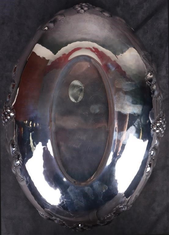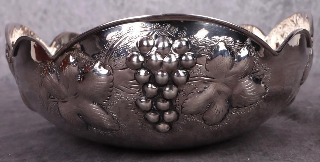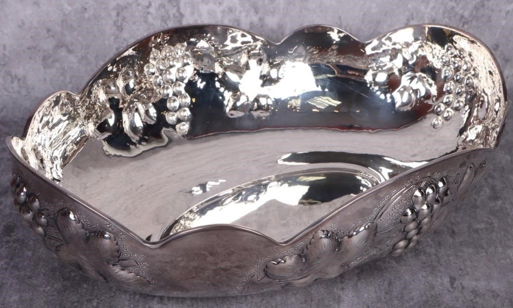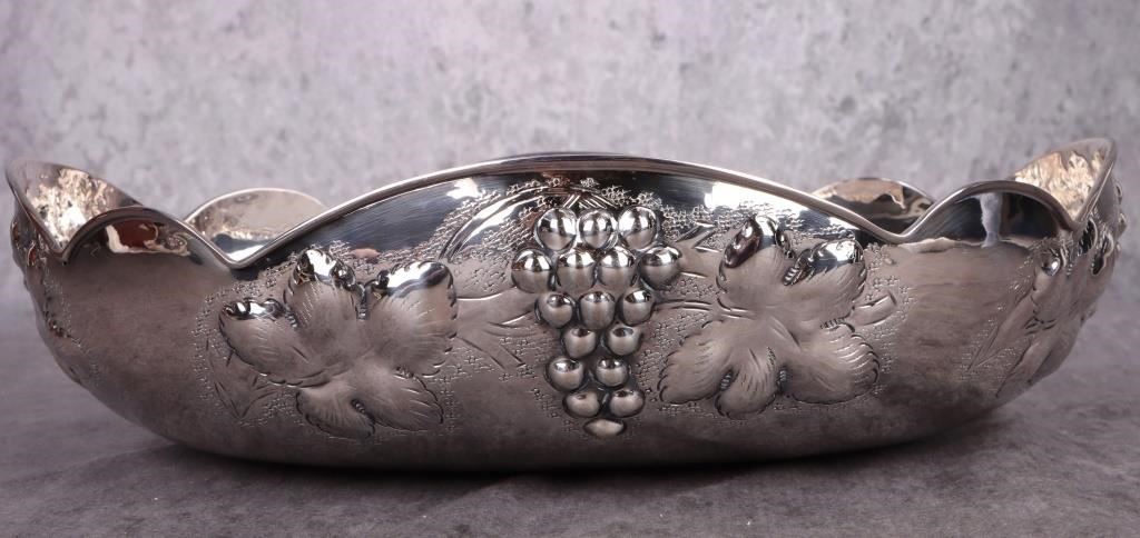 Pristine 0.800 silver oval Cellesato A Mano bowl to include a beautiful grape vine repousse around the outside of the bowl.