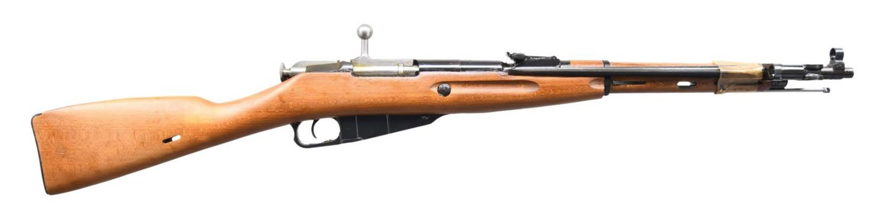 RIFLE. Cal. 7.62x54 R. S# AB12689. Import-marked on the left side of the receiver. Bbl. 20". Bbl. is marked over chamber with "11" in oval, indicating mfg. at Radom Arsenal dated "1953." Rnd. receiver. Tangent rear sight graduated to 1,000 meters. Post-front sight with a protective hood. Straight bolt handle. 12" Folding spike bayonet. A cleaning rod is present. Hardwood stock set with sling slots. UNATTACHED ACCESSORIES: matching cardboard shipping box. 2-Compartment metal oil container. Green web sling with leather collars. CONDITION: rifle is heavily coated in original protective grease, but all aspects, including the bore, appear nearly new. PROVANANCE: the Lifelong Collection of Terrence McCarty. (24-322/RW). CURIO. $300-500.