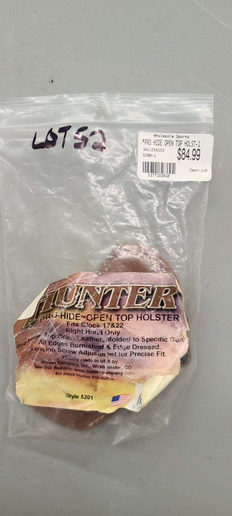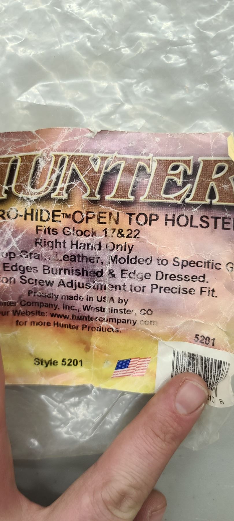 PRO HIDE OPEN TOP HOLSTER. FITS GLOCK 17 & 22 RIGHT HAND $85