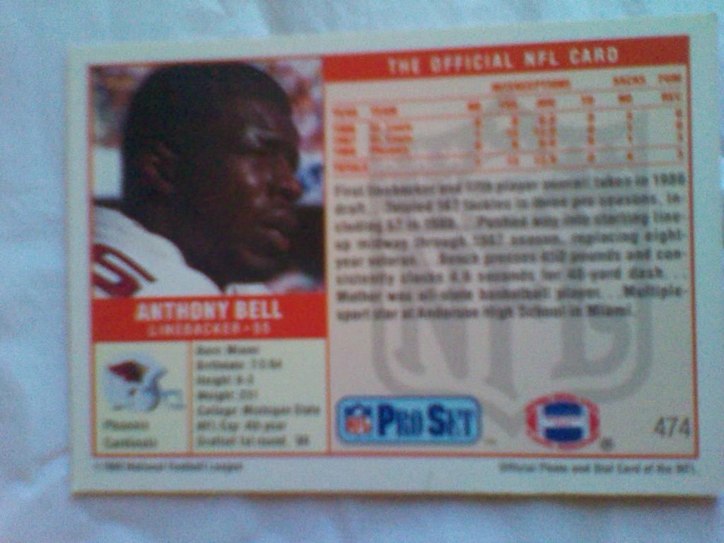 PRO SET NFL ANTHONY BELL 474 1989