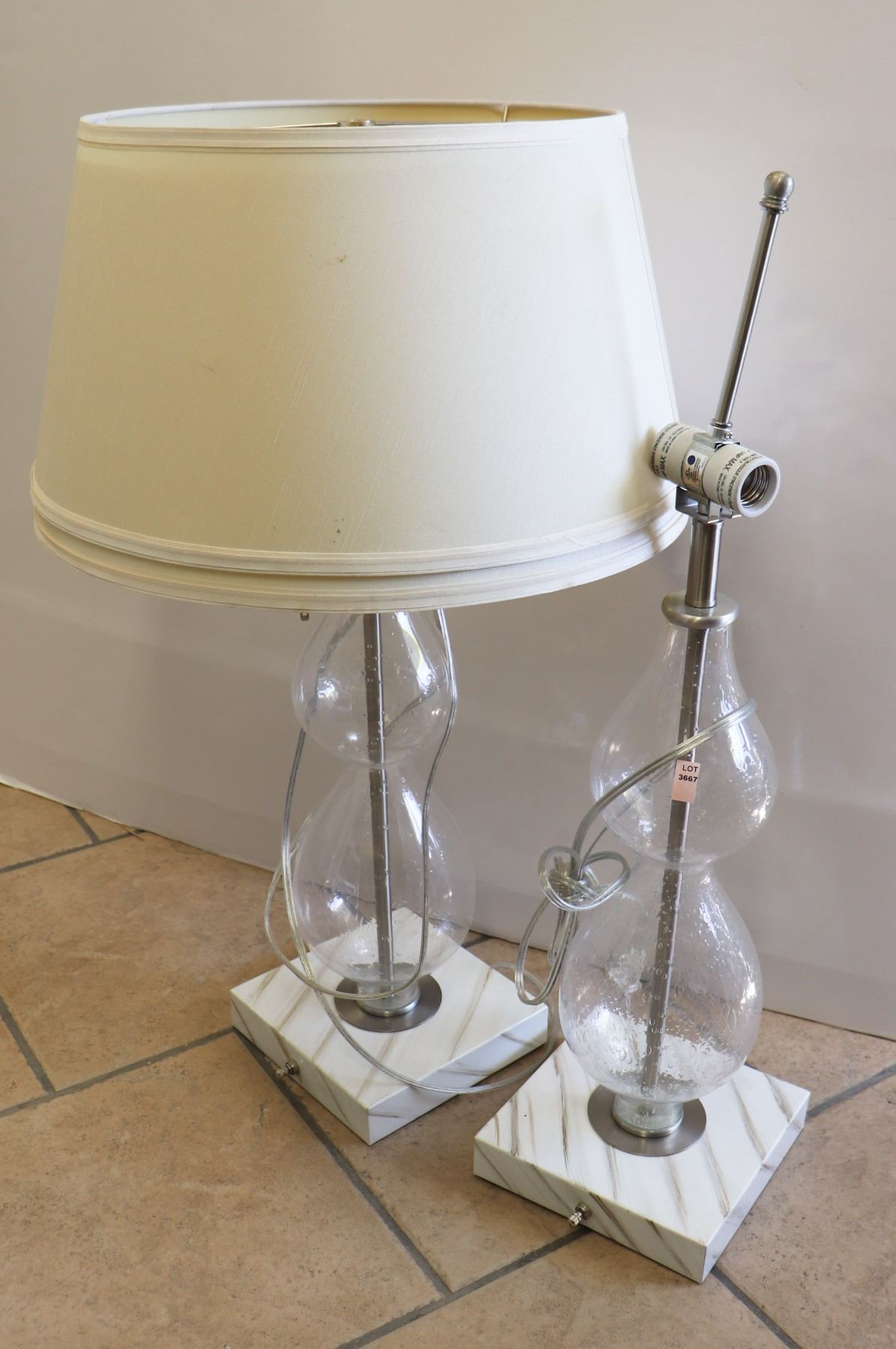 TWO MATCHING LAMPS WITH SHADES, NO BULBS, UNTESTED. APPROX 29" TALL